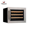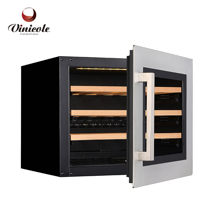 Дверь с металическим фасадом из нержавеющей стали, наполнение -двойной стеклопакет, с энергоэффективным стеклом;Три (3) полки из букового дерева, выдвижные;Двери с замком;Контроллер сенсорной панели со светодиодным дисплеем,с сине-белым светодиодным индикатором;Холодный воздух нагнетается при помощи вентиляторов;Хладагент: R600a