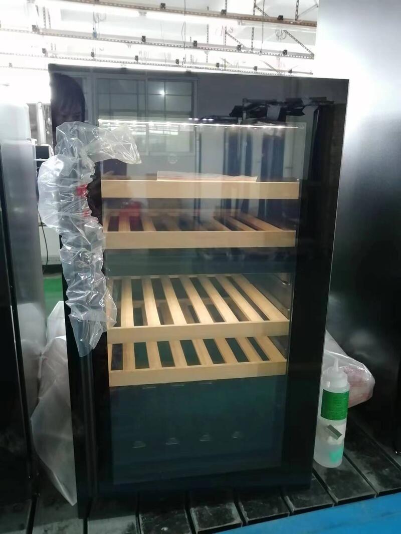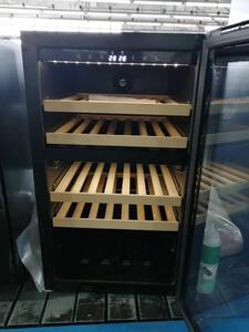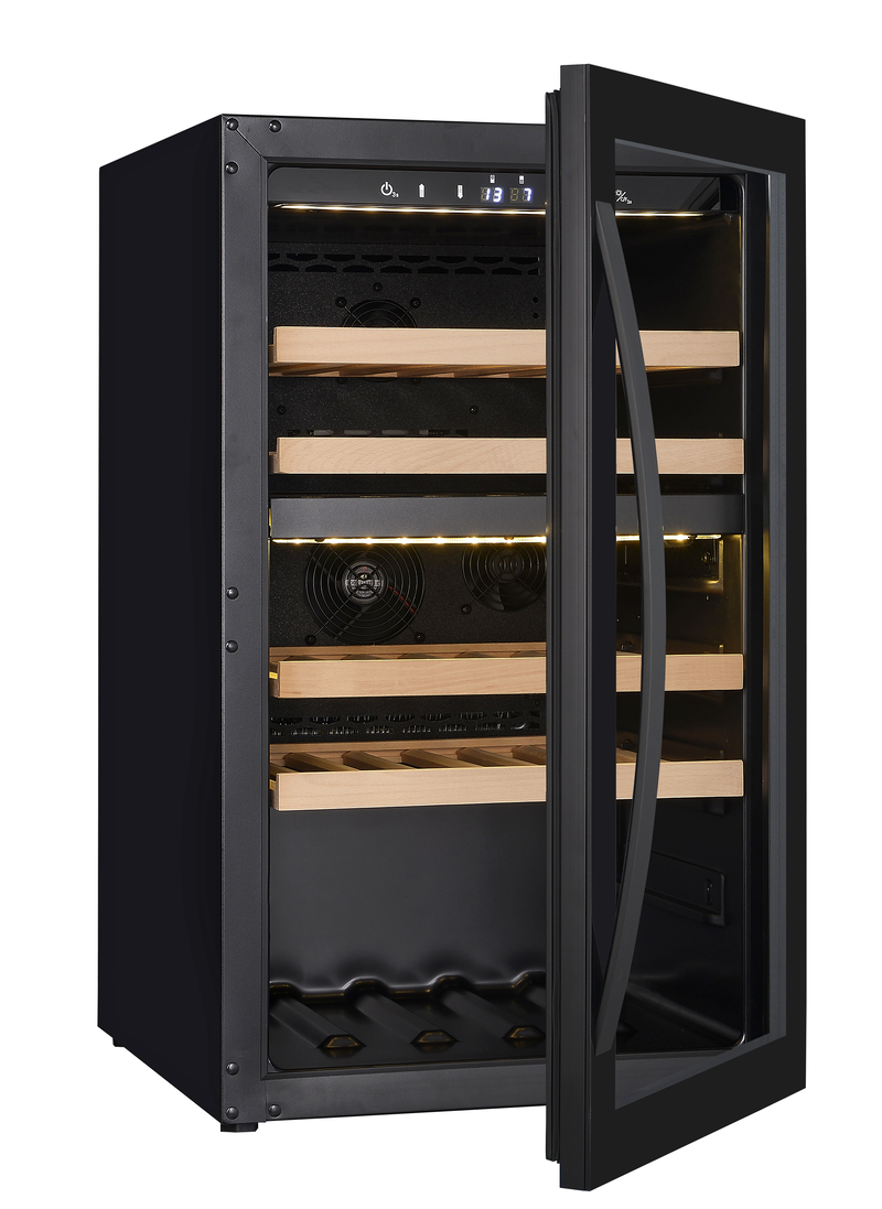 Бесшовная дверная рама из нержавеющей стали, с тройным стеклопакетом;Четыре (4) полок из букового дерева, выдвижные; Двери с замком; Система циркуляции воздуха с угольным фильтром;Контроллер сенсорной панели со светодиодным дисплеем, с сине-белым светодиодным индикатором; Холодный воздух нагнетается при помощи вентиляторов;Хладагент: R600a