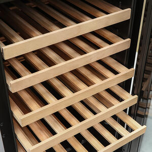 Бесшовная дверная рама из нержавеющей стали, с тройным стеклопакетом;Пять (5) полки из букового дерева, выдвижные; Двери с замком; Контроллер сенсорной панели со светодиодным дисплеем, с сине-белым светодиодным индикатором; Холодный воздух нагнетается при помощи вентиляторов;Хладагент: R600a