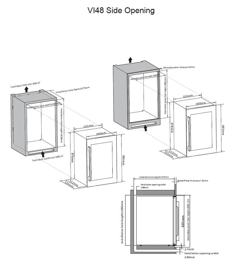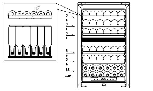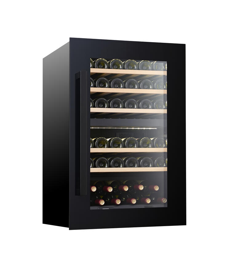 Двойная двухзонная конструкция с компрессорным охладителем;Встраиваемая установка, объем: 102 л (42 бутылок);Черная рамка стеклянной двери с двойным стеклом Low E;Черная ручка (дверные петли с правой стороны, открывание с левой стороны);Белая светодиодная подсветка;5 полок из бука с телескопическими направляющими;Регулируемый диапазон температур: 5-20°C / 5-20°C;Белые светодиодные полосы;Сенсорное управление;Система вентиляции с вентилятором, хладагент: R600a;С угольными фильтрами.