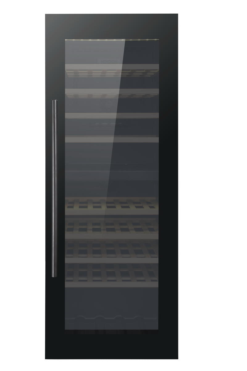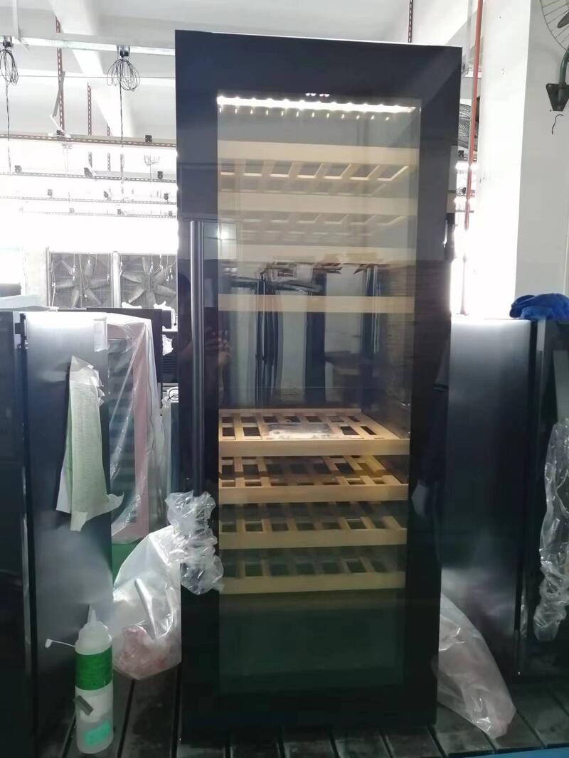 Бесшовная дверная рама из нержавеющей стали, с тройным стеклопакетом;Восемь (8) полок из букового дерева, выдвижные; Двери с замком; Система циркуляции воздуха с угольным фильтром;Контроллер сенсорной панели со светодиодным дисплеем, с сине-белым светодиодным индикатором; Холодный воздух нагнетается при помощи вентиляторов;Хладагент: R600a