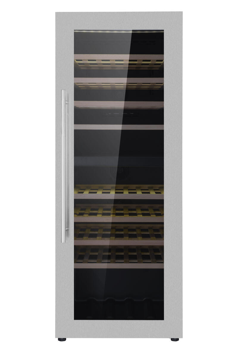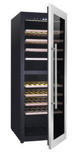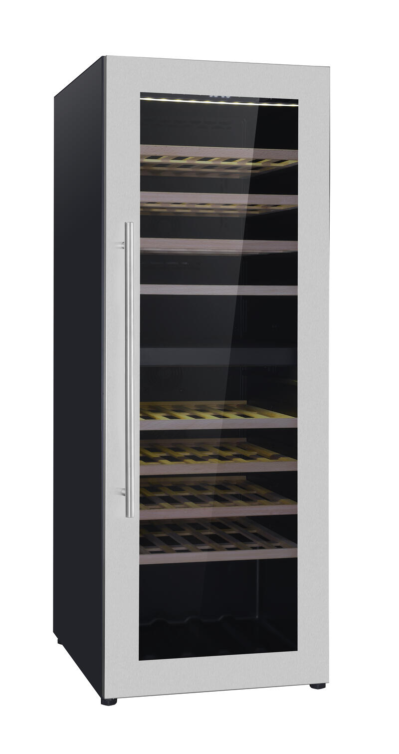 Бесшовная дверная рама из нержавеющей стали, с тройным стеклопакетом;Восемь (8) полок из букового дерева, выдвижные;Двери с замком;Система циркуляции воздуха с угольным фильтром;Контроллер сенсорной панели со светодиодным дисплеем,с сине-белым светодиодным индикатором;Холодный воздух нагнетается при помощи вентиляторов;Хладагент: R600a
